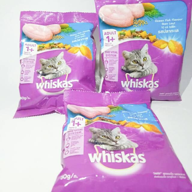 Beli Makanan Kucing Whiskas via Online. Cat Food Whiskas Adult 480gr makanan kering kucing dewasa 480 gramRp27700. WHISKAS Pouch 85gr Basah Rasa Ocean Fish.