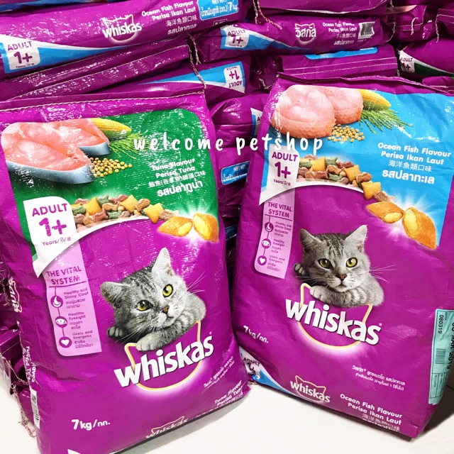 Cat Food Whiskas Adult Ocean Fish tuna 7 Kg Makanan kering Kucing. WHISKAS Pouch 85gr Basah Rasa Tuna White. WHISKAS Pouch 85gr Basah Rasa Mackerel.
