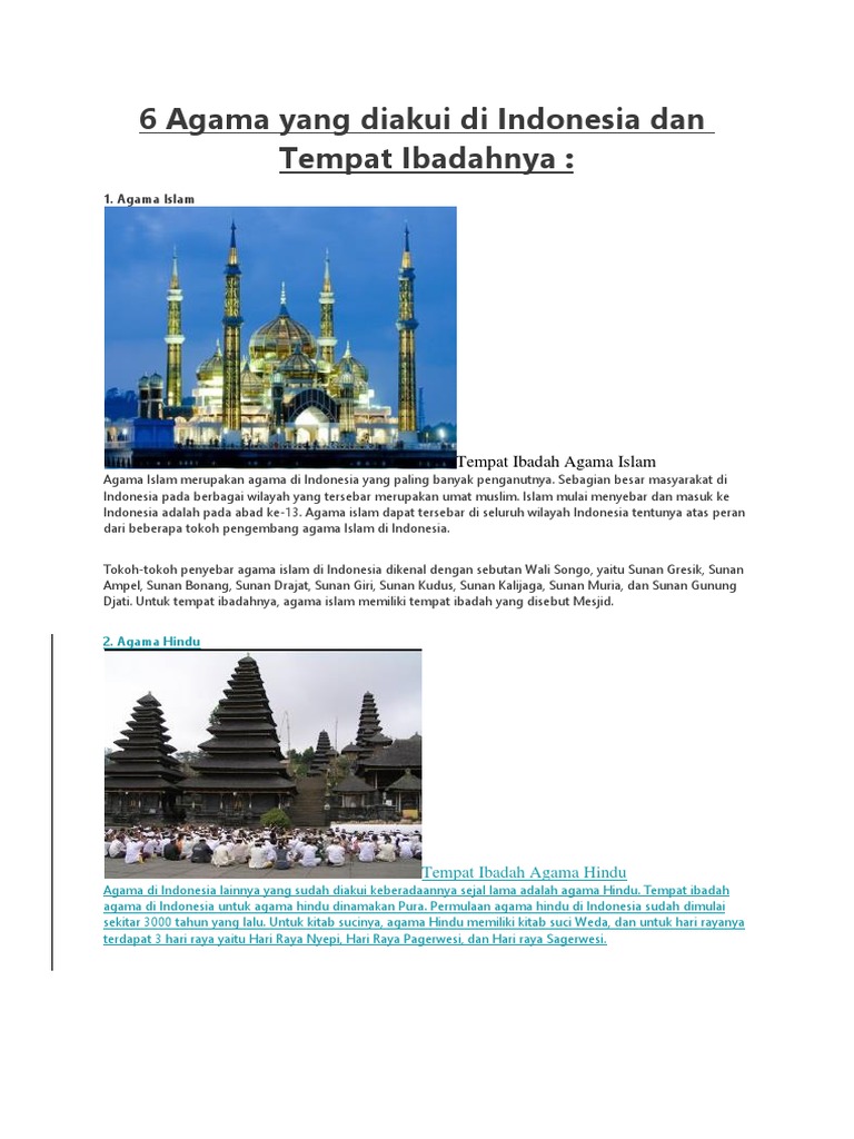 6 Agama Di Indonesia Dan Tempat Ibadahnya